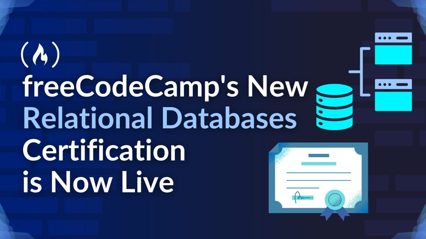 Read more: freeCodeCamp’s New Relational Databases Certification is Now LiveThe freeCodeCamp community just published our new Relational Databases certification. You can now sit for the exam to earn the free verified certification, which you can add to your résumé, CV, or LinkedIn profile. Each certification is filled with h… The freeCodeCamp community just published our new Relational Databases certification. You can now sit […]
